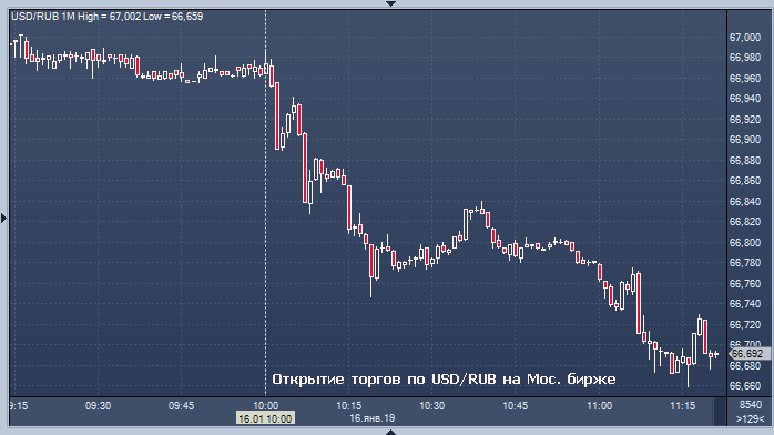 К 10:55 мск среды рубль набирает 17 копеек в паре с долларом расчетами «завтра», котировки вблизи 66.79 за доллар. Пара евро/рубль расчетами «завтра» сейчас вблизи уровня 76.10, и здесь рубль набирает 31 копейку. Нефть марки Brent растет с начала дня на четверть процента после почти трехпроцентного роста накануне благодаря сокращению добычи, во главе которого стоит ОПЕК, и несмотря на признаки замедления роста мировой экономики, и баррель сейчас оценивается в $60.79.
