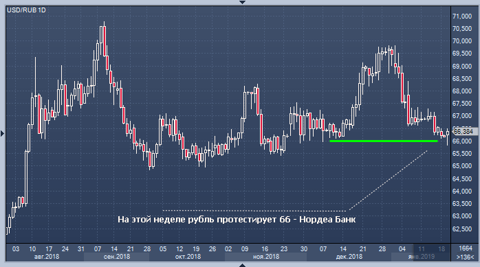 «С учетом обозначенных факторов в течение недели рубль может попытаться протестировать отметку 66 в паре с долларом и 75 в паре с евро. Риски для европейской валюты, обозначенные выше, могут позволить рублю лучше чувствовать себя именно в паре с евро», — указывают в Нордеа Банке.