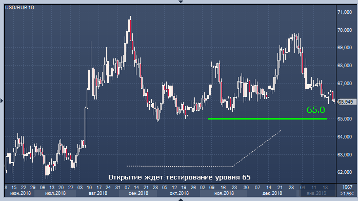 Эксперт ждет роста российской валюты до 65.70, а ключевым днем считает пятницу, когда экспортеры будут продавать валюту расчетами «сегодня» для уплаты НДПИ.