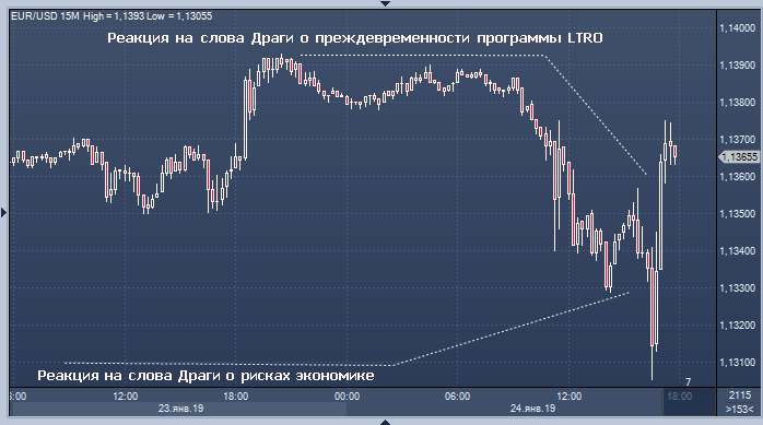Евро ненадолго упал до минимального уровня этого года, после чего восстановился, поскольку Драги дал понять, что пока еще нет оснований для нового раунда программы долгосрочного кредитования (LTRO) для банков — шаг, который можно рассматривать как смягчение денежно-кредитной политики. Единая валюта снизилась на 0.2 процента за день до 1.1363 доллара к 17:36 мск четверга. Ранее валюта падала до 1.1305.