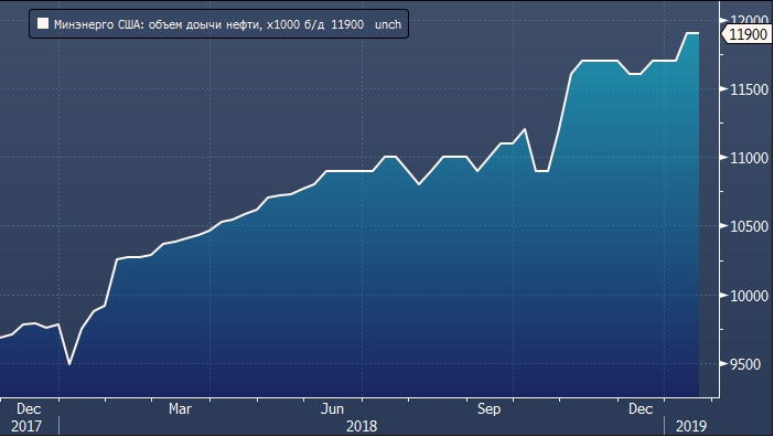 На этой неделе в среду Управление энергетической информации Минэнерго США опубликовало данные о запасах нефти и нефтепродуктов. Согласно отчету, добыча нефти составила 11.9 млн баррелей. Это значение соответствует рекордным историческим максимумам.