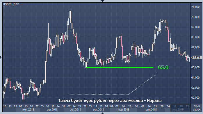 «Таким образом, укрепление начала года лишь возвращает российскую валюту к общему тренду валют развивающихся стран. На горизонте 1–2 месяцев рубль может продолжить чувствовать себя комфортно, пытаясь приблизиться к отметкам 65 и 74 в паре с долларом и евро соответственно», — указывают в Нордеа Банке.