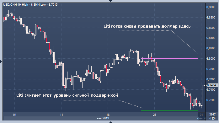 «Будем ждать более высоких уровней, таких как ослабление юаня до 6.8, чтобы снова войти в сделку и занять позицию на ожиданиях вероятной встречи Трампа-Си к концу февраля», — говорит Лу.