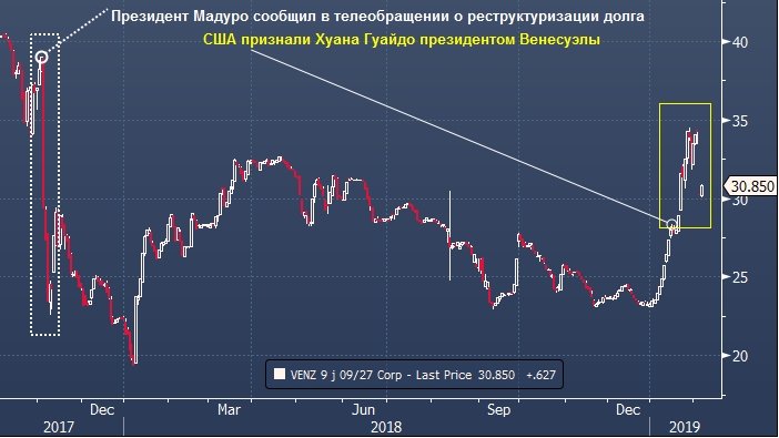 Оппозиционные венесуэльские политики ведут переговоры с представителями инвестиционного банка JP Morgan, поскольку опасаются возникновения ситуации, схожей с той, что была в Аргентине после дефолта 2001 года, сообщило агентство Bloomberg. Аргентинский дефолт 18 лет назад привел к беспорядочной реструктуризации, многолетним судебным тяжбам и более чем 10-летнему отсутствию страны на международных рынках капитала.