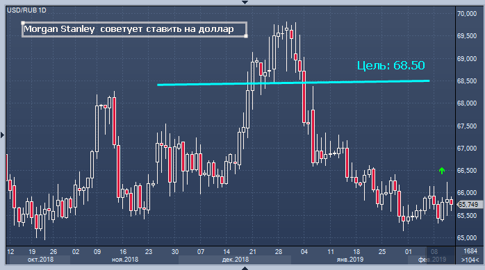 MS рекомендует покупать доллар против рубля с целью 68.5 рубля за доллар.
