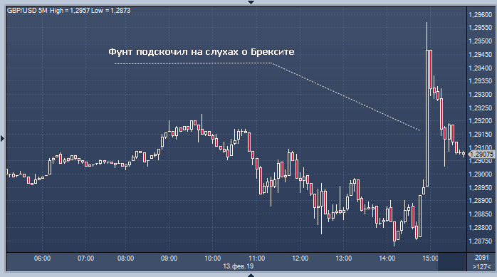 По словам европейского трейдера, опрошенного Bloomberg, фунт поглотил стопы выше $1.2920 на сообщениях об оптимистичном продвижении переговоров по Brexit. EUR/USD сейчас торгуется на 1.1313. В частности, в сообщениях шла речь о вероятном продлении сроков Брексита, то есть об изменении статьи 50 Лиссабонского договора. Тем не менее стоит напомнить, что секретарь Brexit С. Барклай уже обговорил этот потенциальный сценарий, вопреки комментариям во вторника переговорщика Мэй О.Роббинса. Таким образом, GBP удалось быстро оставить позади разочаровывающие данные по инфляции за январь, опубликованные ранее европейским утром, переориентировав спекулянтов на психологическую цифру 1.3000.