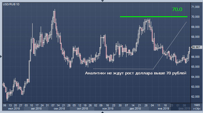 «Сейчас в курс доллара заложены повышенные риски. В частности, санкционный дисконт может доходить до 6 руб. по паре доллар/рубль. Таким образом, в случае принятия санкций мы не ожидаем существенного влияния на рынок. На 2019 год мы сохраняем прогноз среднегодового курса пары доллар/рубль вблизи отметки 65. Несмотря на ужесточение „бюджетного правила“, котировки рубля должно будет поддержать снижение глобальных рисков, а по-прежнему ожидаемое нами во второй половине 2019 года снижение ключевой ставки может поддержать спрос на рубли в рамках „кэрри-трейд“, — написал аналитик Открытие Брокер Тимур Нигматуллин.