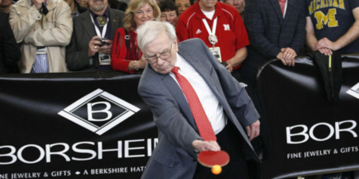 Генеральный директор Berkshire Hathaway Уоррен Баффетт играет в настольный теннис в Омахе, 5 мая 2013 года на следующий день после ежегодного собрания акционеров компании.