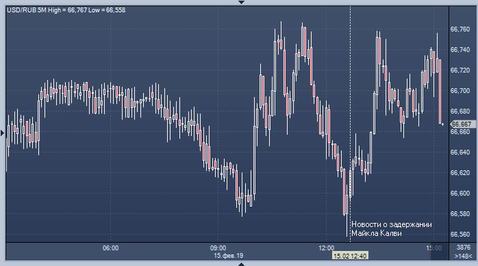 Рублю пришлось оставить попытки развить восстановление в виду новостей о том, что американский инвестор Майкл Калви, а также ряд других лиц были задержаны в Москве. Их обвиняют в мошенничестве в особо крупном размере — следствие подозревает их в хищении более 2.5 млрд рублей — и суд будет решать вопрос об их аресте. На фоне этих событий курс доллара к рублю поднялся от уровней ниже 66.60 к максимумам сессии неподалеку от 66.76.