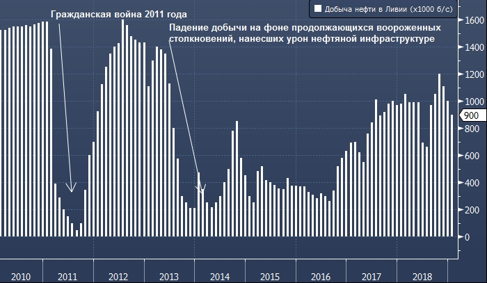 В декабре вооруженные протестующие захватили заблокировали месторождение Шарара, в результате чего добыча в Ливии упала с 1.3 млн до уровня около 900 000 баррелей в сутки.