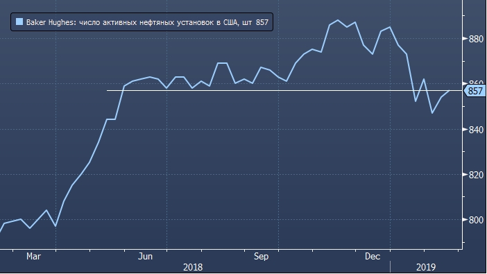 - количество нефтяных установок увеличилось на 3 до 857 шт.;