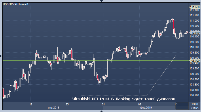 Похоже, что торговые переговоры между США и Китаем, достигли определенного прогресса, помогая подтолкнуть вверх акции на Уолл-стрит. Эксперт говорит, что пара доллар/иена (USD/JPY) с большей вероятностью будет предпринимать попытки роста примерно до апреля или мая, так как ожидается ослабление торговой напряженности между США и Китаем. В ближайшее время пара будет двигаться в диапазоне 109.50–111.50. Индекс доллара снизился сегодня на 0.13%, падая третий день, до 96.77.