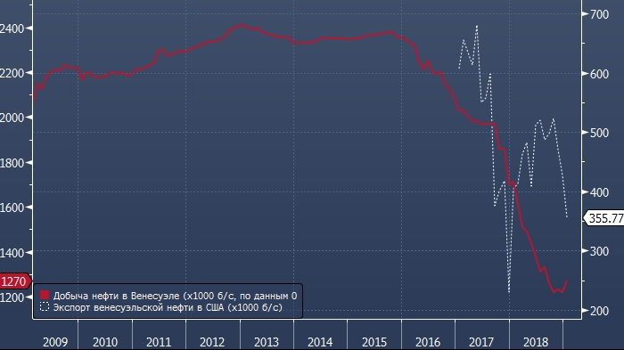 В Ursa не отслеживают динамику судов и экспортных потоков, но склонны считать, что властям удалось найти покупателей на нефть, экспорт которой пытаются остановить США и от которой под их давлением отказываются давние клиенты. С другой стороны, аналитики компании допускают, что сокращение запасов может быть следствием того, что экспорт сокращается, но добыча падает еще быстрее, а значит, ситуация в нефтяной отрасли носит еще более драматичный характер, нежели предполагалось ранее.