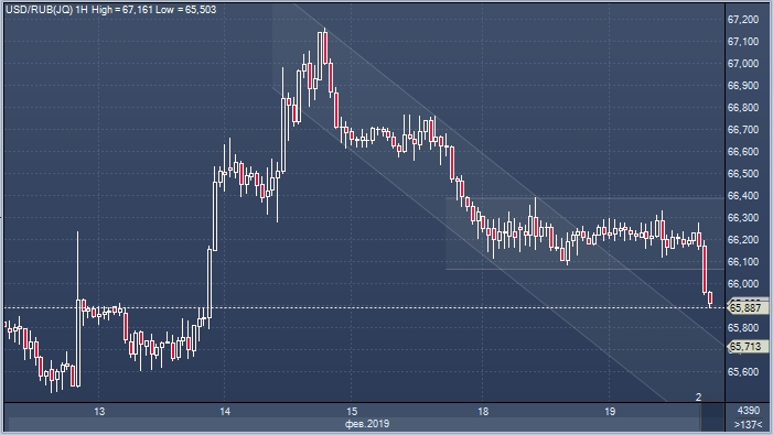 Курс рубля активно укреплялся против доллара в пятницу, после консолидировался в диапазоне в понедельник и большую часть вторника, а затем на вечерних торгах возобновил рост. Пара USDRUB ушли ниже 66 рублей за доллар впервые со среды, вернувшись к тем уровням, которые занимала до сообщения о новых санкциях.