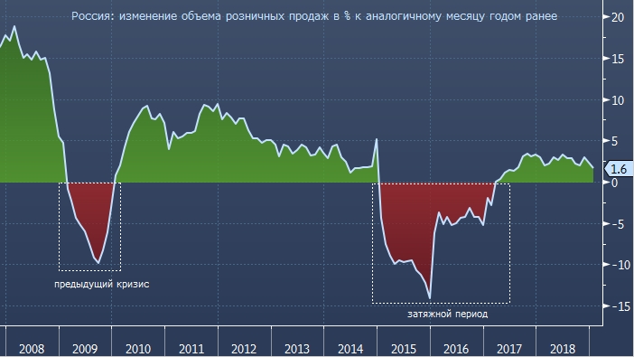 Объем розничных продаж в январе вырос на 1.6% по сравнению с тем же месяцем годом ранее, сообщил во вторник вечером Росстат. В декабре показатель в годовом исчислении вырос на 2.3%. При этом эксперты прогнозировали в январе рост на 1.0% г/г, однако фактические цифры неожиданно превзошли прогнозные оценки.