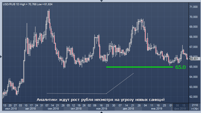 По мнению Дмитрия Полевого из РФПИ, корпорациям, придерживавшим экспортную выручку с целью дождаться привлекательных для себя уровней валюты США, придется ее все равно продавать, но «в рынок», из-за чего есть шансы укрепления рубля, до 65.00–65.50 за доллар.