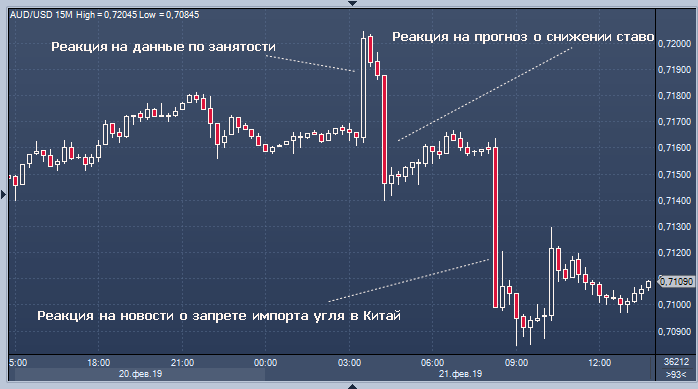 Снижение на новостях об ограничении поставок угля вызвало импульс продаж по стоп-лоссам ниже 0.7140, заявили два азиатских дилера в интервью Bloomberg. Большая часть этого заключалась в изменении котирования банками, и мало кто из клиентов успел зашортить аусси на этой новости, добавили они.