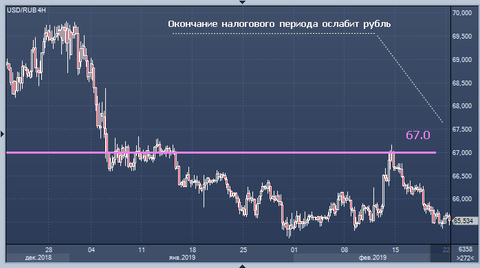 "Российский рубль продолжает удерживать крепкие позиции у отметки 65.5 против доллара и 74.3 против евро, фиксируя самый сильный результат среди валют развивающихся стран за последние три дня. Основную поддержку рублю оказывает приближение налоговых выплат (НДПИ 25 февраля), при этом дополнительный позитив российскому валютному рынку добавляет продолжающийся рост цен на нефть (Brent $67/барр.). В отсутствие значимой статистики сегодня российский валютный имеет все шансы сохранить текущие сильные позиции на фоне продолжения подготовки к налоговым выплатам в понедельник», — отмечают аналитики Росбанка.