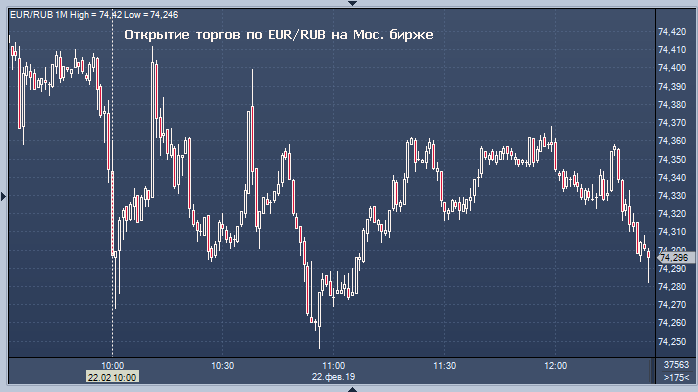- 74.3332 рубля за 1 евро