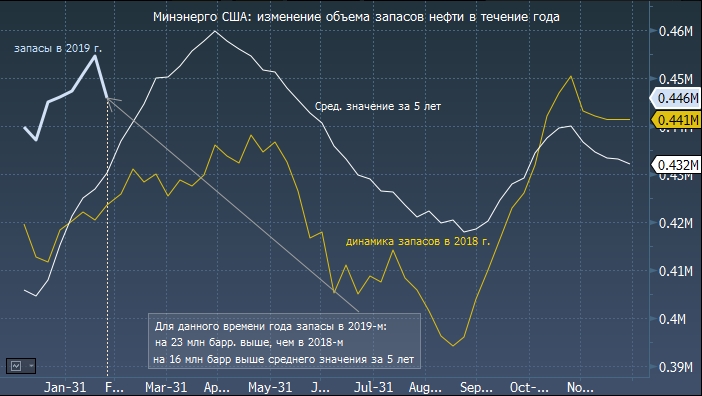 Эксперты, опрошенные накануне агентством Bloomberg, прогнозировали рост запасов на 3 млн баррелей. При этом опубликованный накануне отчет Американского института нефти предрекал сокращение запасов на 4.2 млн баррелей.