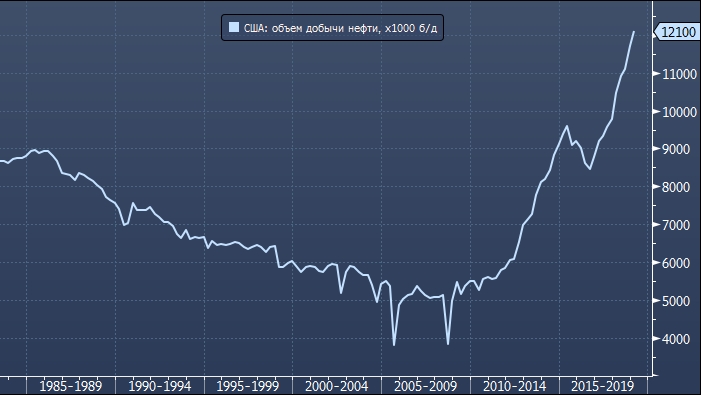 При этом добыча нефти в США обновила рекордный максимум и выросла до 12.1 млн баррелей в день.