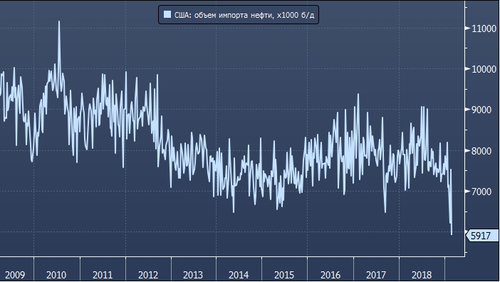 - Импорт нефти в США: — 1.61 млн баррелей в день до 5.92 млн баррелей в день