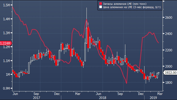 Этот объем представляет собой около четверти всех запасов LME и около 8.2% от продаж компании в 2018 году. В Русал отказались от комментариев по этому вопросу, но, если информация достоверна, то это значит, что по крайней мере такой объем запасов металла скопился у компании в период с апреля 2018 года по январь 2019.