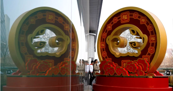На фото: Пекинская инсталляция с образом свиньи, символизирующей благосостояние