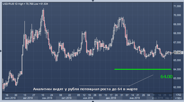 У рубля есть шансы укрепиться, несмотря на санкции и покупки валюты в рамках бюджетного правила считают многие аналитики, указывая на потенциал роста до 64–65 на горизонте 1–2 месяцев. Дело в том, что рубль показывает с начала года лучшую динамику среди мировых валют, что подогревает к нему интерес со стороны спекулянтов, пропустивших ралли. Март уже заявлен аналитиками как месяц роста рубля, несмотря на санкционные риски и покупки валюты Министерствов финансов, объем которых оказался больше ожидаемого. Минфин направит на покупку валюты в марте 310 миллиардов рублей, рынок ожидал 263 миллиарда рублей. Эксперты спокойны: сезонно высокий профицит текущего счета нивелирует эти интервенции, а риски санкций окажут влияние, только если реализуются.