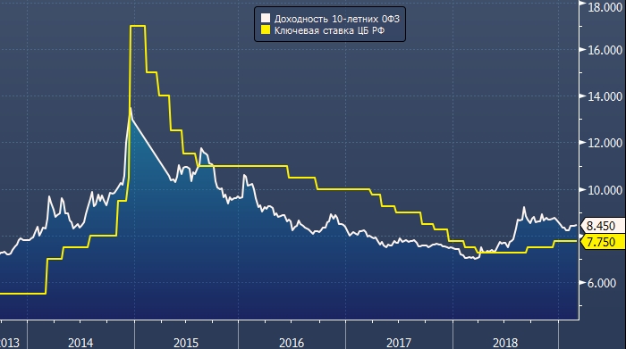 Эксперт пояснил, что в 2016 году доходность корпоративных бондов на 1% превышала доходность ОФЗ, но потом ситуация изменилась. В прошлом году доходность долгосрочного суверенного долга РФ превысила доходность среднесрочных корпоративных бумаг.