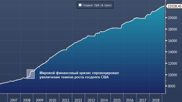 По прогнозу CBO (Управление Конгресса США по бюджету), в 2019 году дефицит федерального бюджета вырастет на $118 млрд до $897 млрд, причем эти цифры не учитывают вероятность рецессии, при которой дефициты традиционно и резко увеличиваются.