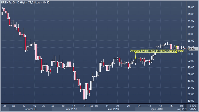 Как известно, нефть цена на нефть Urals устанавливается как премия или дисконт к цене североморского сорта Brent, который является бенчмарком. Средняя рыночная цена Brent в феврале составила $64.46 за баррель, то есть на 54 цента (0.8%) выше той цены, которую Минэкономразвития подсчитало, как среднюю для Urals.