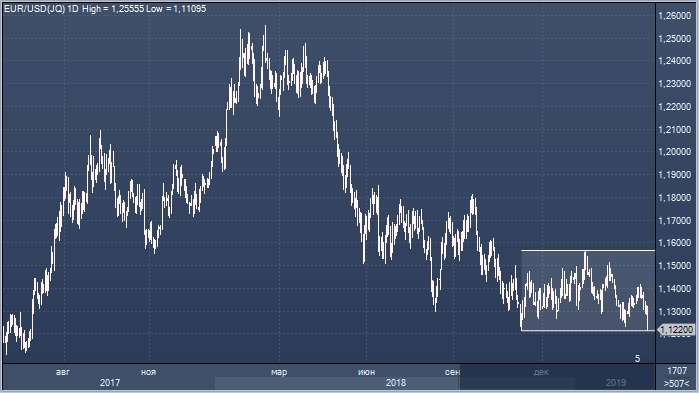 Курс евро отреагировал снижением к доллару на 0.8% и опустился ниже минимумов 15 февраля. Текущие котировки в валютной паре находятся в непосредственной близости от уровня 1.1215 — минимального значения с 13 ноября. Ниже этого значения евро не падал с 27 июня 2017 года.