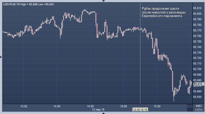 Новости о принятой резолюции оставили рубль равнодушным: USDRUB продолжает падать на фоне общего ослабления доллара и роста цена на нефть, а курс EURRUB остается вблизи 74 рублей за евро.
