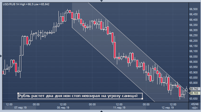 Рубль сегодня удивляет своей стойкостью к внешним негативным факторам. Так, его реакция на падение фунта после появления информации о том, что сегодняшнее голосование по проекту Брексита в Палате общин, скорее всего, будет провалено, была кратковременной. Решение о вчерашних санкциях, угрозы новых санкций США, желание Европарламента остановить проект «Северный поток 2» и ужесточить санкции против Москвы и вовсе остаются незамеченными российской валютой. Благоприятно на рубле сказался инфляционный отчет в США. Данные говорят о том, что Федрезерв не будет спешить с повышением процентных ставок, и текущая пауза продлится еще какое-то время, особенно если вспомнить крайне удручающий рост занятости в последнем отчете по рынку труда.