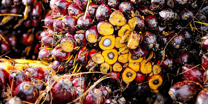 На фото: плоды масличной пальмы, используемые для производства пальмового масла.