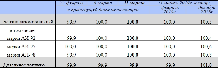В четверг 14 марта Федеральная служба государственной статистики (Росстат) представила данные еженедельного мониторинга потребительских цен на нефтепродукты за предыдущую неделю с 4 по 10 марта 2019г.