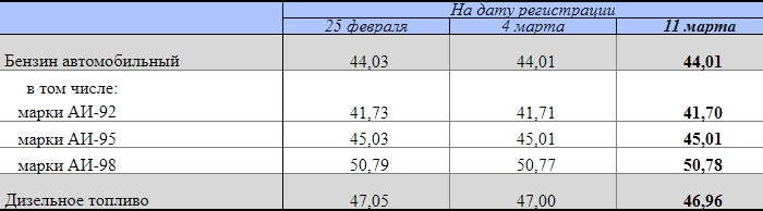 - марки АИ-92 стоил от 40.20 до 43.12 рубля за литр,