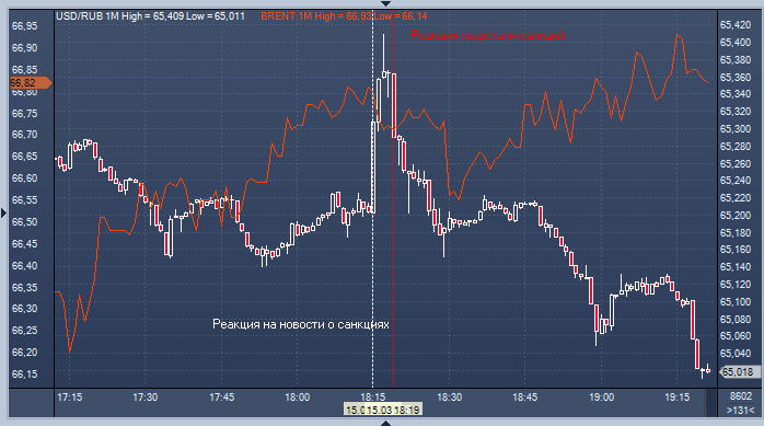 Реакция рубля на новости о новых санкциях США оказалась резкой, но скоротечной — первоначальная паника при сообщений о новых рестрикционных мерах сошла на нет, как только стали известны детали. В итоге на росте USDRUB к 65.40 участники рынка с готовностью возобновили продажи, и к настоящему времени пара обновила минимумы и теперь проверяет на прочность поддержку в районе 65 рублей за доллар США, используя восстановление цен на нефть.