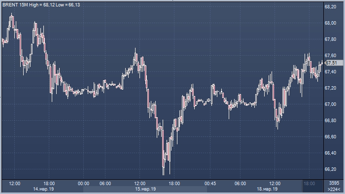 Котировки на рынке нефти демонстрируют позитивную динамику на американских торгах в понедельник 18 марта. Brent растет на 0.54% до $67.52 за баррель, при этом WTI дорожает на 0.96% до $59.08 за баррель.
