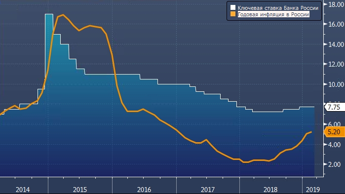 Потребительская инфляция в России замедлилась и остается ниже тренда, который изначально прогнозировал Банк России, инфляционные ожидания также ослабли, поэтому регулятор на совещании совета директоров в эту пятницу, сохранив ключевую ставку на уровне 7.75% годовых, подтвердит возможность смягчения монетарной политики в конце 2019 года, прогнозируют экономисты Ренессанс Капитала.