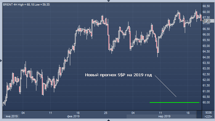 Международное рейтинговое агентство Standard & Poor’s Global Ratings (S&P) пересмотрело в сторону повышения свой прогноз средней цены нефти сорта Brent в 2019 и 2020 году до $60 за баррель. Прежний, представленный в январе, прогноз составлял $55 за баррель. В январе прогноз по Brent был снижен до $55 за баррель с $65. Компания объяснила повышение прогноза сокращением добычи нефти членами ОПЕК и Россией. Больше всего это повлияет на цену Brent, меньше — на WTI. Венесуэле отведеено отельное внимание. В этой стране продолжается политический кризис и экономический спад.