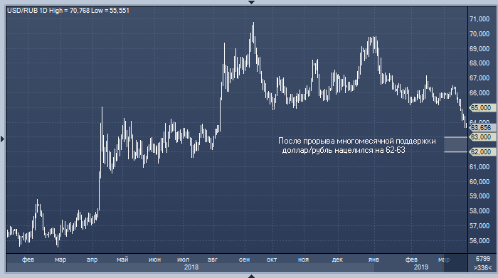 В свете вышесказанного дальнейшее снижение курса доллара к рублю в область 62 выглядит все более вероятным, отмечает Андрей Кочетков из «Открытия». Очередное смягчение позиции ФРС будет и дальше стимулировать спрос на рискованные активы, уверен эксперт, поэтому и рублевый «кэрри» будет становиться все привлекательнее.