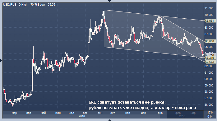 Рубль утром в четверг достиг при открытии тех же максимумов, что были установлены в среду после заседания ФРС: 63.6525 рубля за доллар вчера — и 63.66 сегодня. Не стоит сбрасывать со счетов и дорогую нефть, также обновившую локальные пики и крупные налоговые выплаты. Однако перед завтрашним решением совета директоров Банка России рубль, скорее всего сегодня, когда производится экспирация фьючерсов и опционов, возьмет паузу в укреплении. То есть, если он и обновит максимумы, то не намного. Согласно последнему опросу Рейтер, аналитики не ждали от российского регулятора изменения ставок, но допускали смягчение риторики. Экономический предпосылок для изменения ставки сейчас также нет. Пик российского мартовского налогового периода приходится на следующий понедельник, когда пройдет уплата НДПИ, НДС и акцизов, но в текущем месяце еще и значителен по объему налог на прибыль, уплачиваемый 28 марта.