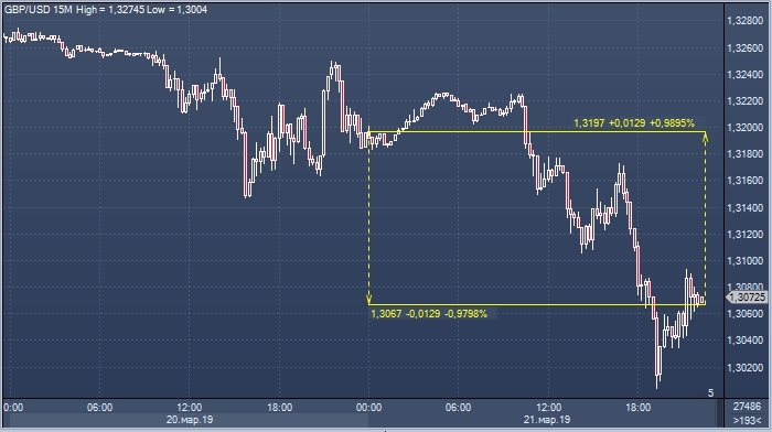 Фунт стерлингов в четверг подешевел на 0.98% до 1.3072 по отношению к доллару США. При этом в ходе торгового дня падение составляло 1.45%.
