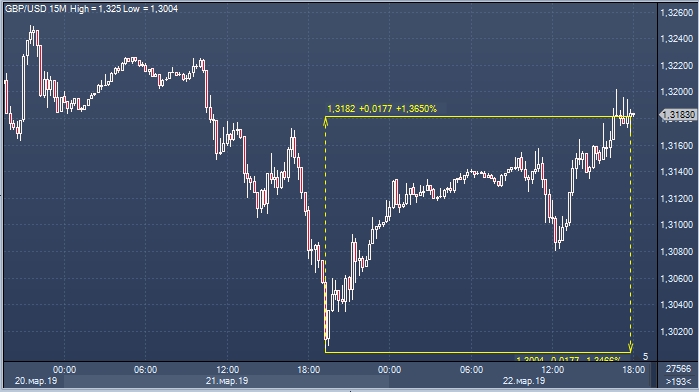 Стоит отметить и укрепление британского фунта в пятницу. Эта валюта не сходит с полос финансовых СМИ из-за того, что участники рынка держат в фокусе Brexit. На фоне опасений, что Великобритания может покинуть 29 марта Евросоюз без соглашения (жесткий Brexit) курс фунта упал на этой неделе до 1.3000. Но затем британская валюта подорожала на 1.4% — европейские лидеры предоставили Терезе Мэй двухнедельную отсрочку, чтобы успеть согласовать сделку с парламентом.
