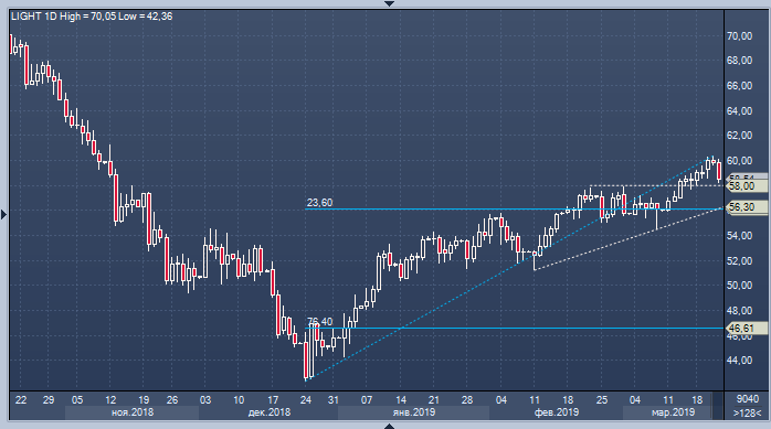 Рынок нефти позитивно отреагировал на публикацию отчета, однако насколько продолжительным будет эффект, сказать сложно: участники рынка предпочитают фиксировать прибыль после роста нефти выше $60 за баррель. Нефть пока остается $58, прорыв ниже откроет дорогу коррекции в направлении $56, неподалеку откуда проходит линия поддержки с 11 февраля и 23.6% от роста с декабря