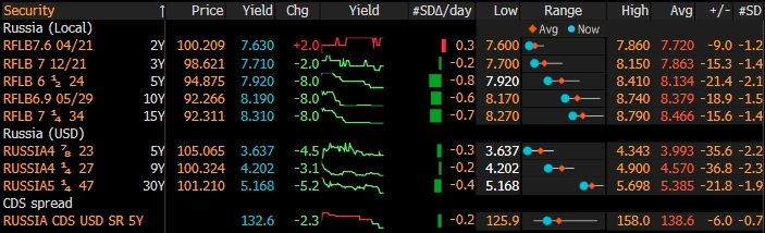 Bloomberg: текущие показатели вторичного рынка ОФЗ