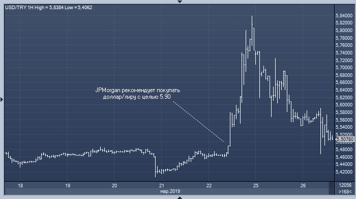 В результате этих событий курс доллара к лире полностью отыграл весь пятничный рост, спровоцированный рекомендацией JPMorgan покупать пару с целью 5.90. Обвал национальной валюты побудил президента Турции Реджепа Эрдогана выступить в воскресенье с заявлением о том, что банкиры, виновные в произошедшем, понесут наказание.