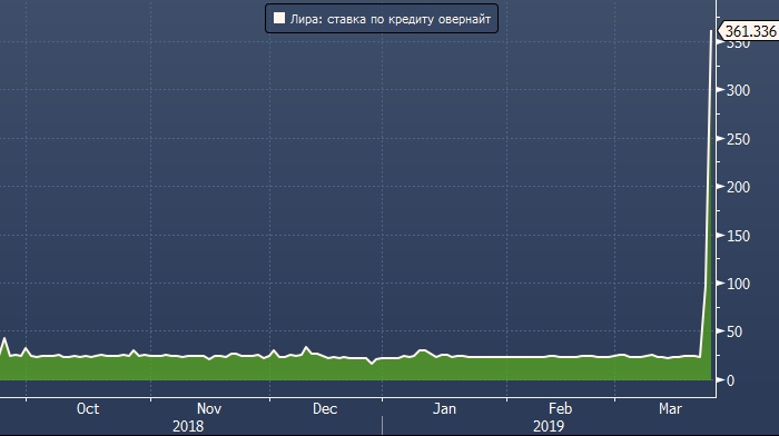 Дефицит турецкой валюты на рынке спровоцировал почти десятикратный рост ставок по кредитам овернайт в лирах, которые сегодня взлетели выше отметки 300%, что является рекордным значением как минимум с валютного кризиса 2001 года.